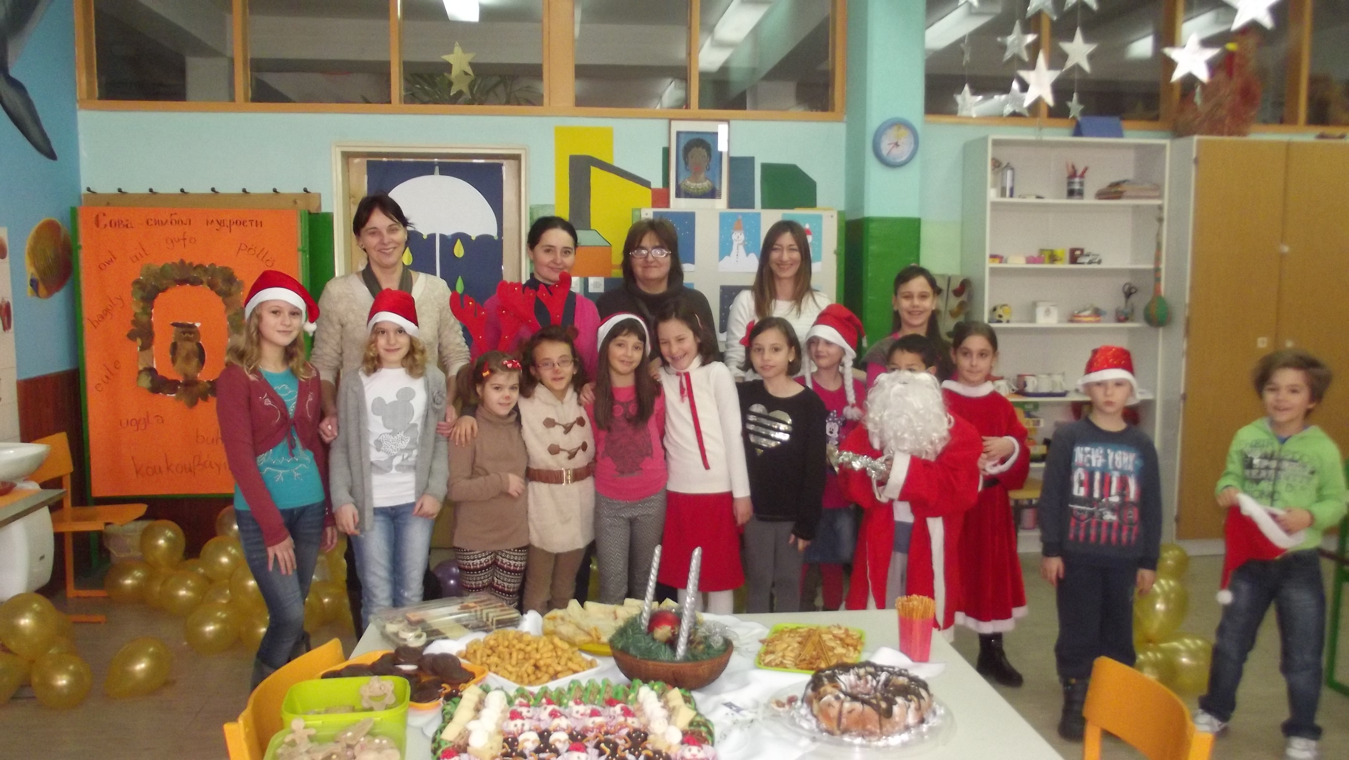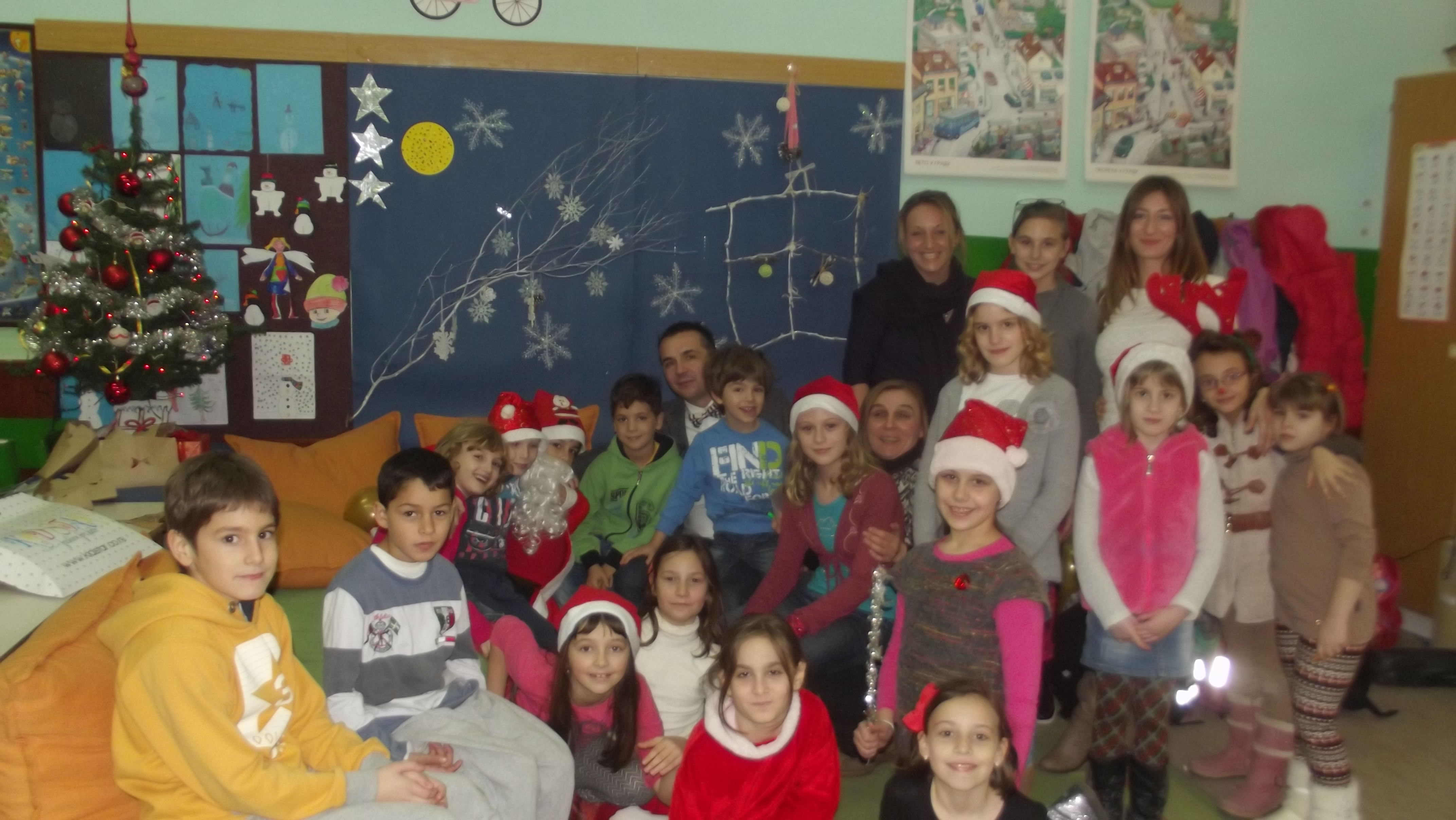 Тако су другари, ови мали, а у ствари у срцу све већи и већи, направили журку поводом завршетка првог полугодишта и новогодишњих празника. Журци су присуствовали сви радници школе, наставници, учитељи и стручни сарадници, којима су малишани из продуженог боравка припремили новогодишње поклоне и малу закуску.  Сви  присутни, домаћини и гости, обасјани радошћу и срећом,  акумулирали су љубав и позитивну енергију, створили депо љубави у срцу коју ће, надамо се сви,  несебично даровати другима  у Новој 2015.години.  Срећна нам била свима  !!!!!!!!!